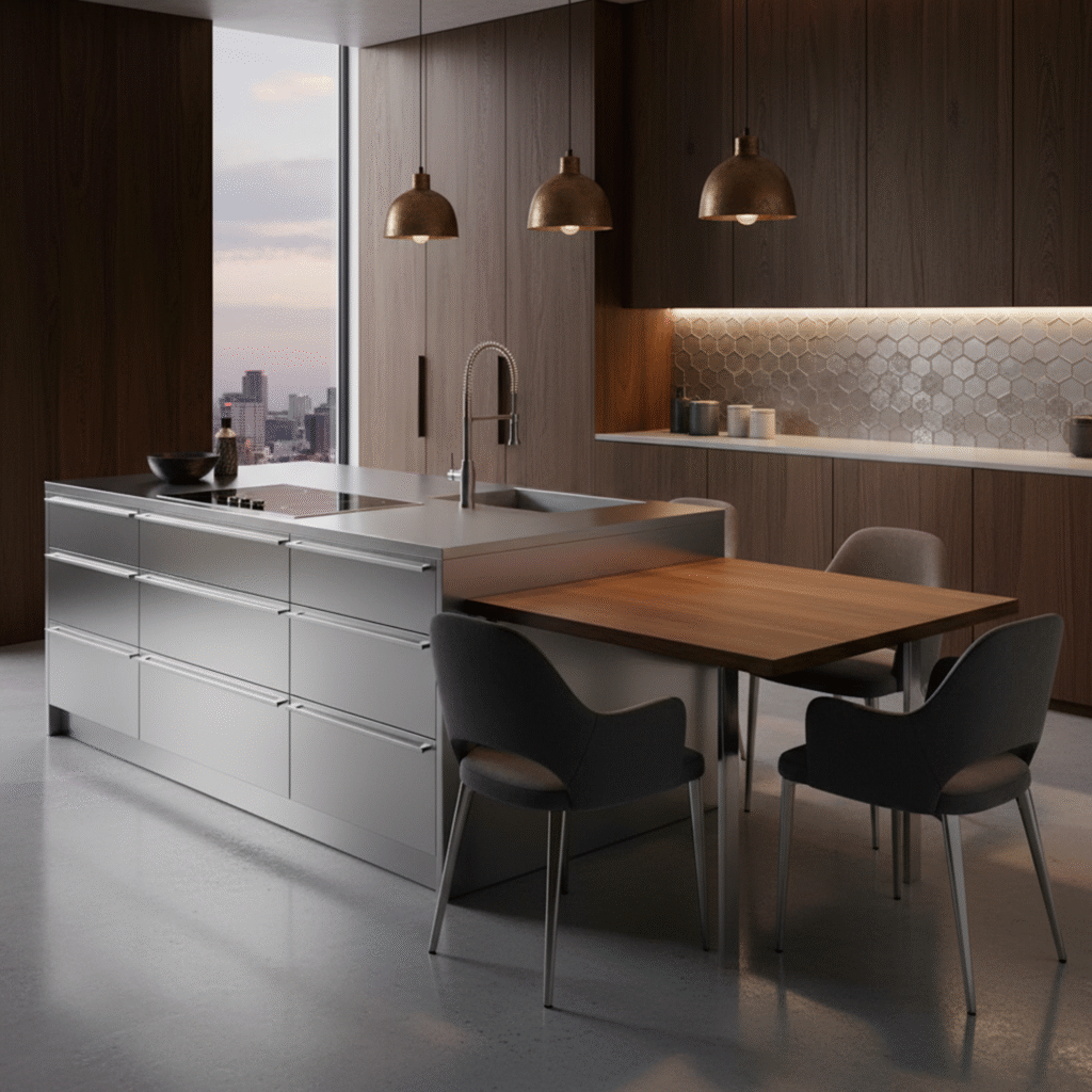 Unimos design, engenharia e fabricação de alta precisão para transformar ideias em aço inox. Do conceito à instalação, conduzimos cada etapa com rigor técnico e estética refinada. Nossa vantagem é integrar criação e execução sob o mesmo teto, garantindo viabilidade, acabamento e prazos controlados. Somos uma experiência completa para arquitetos, designers e pessoas que buscam soluções únicas e duráveis.